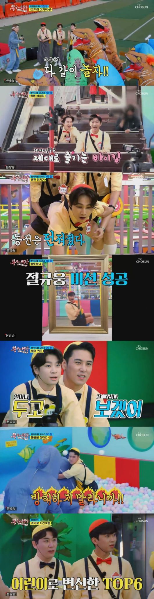 '뽕뽕랜드'에 입장한 TOP6는 뽕딱지 10개를 획득하면 '행운의 뽕뽑기' 1회 선택권을 얻을 수 있는 규칙 아래 각종 게임을 시작했다. 첫 번째로 '뽕볼을 찾아라'에서 OB팀 장민호는 상어들의 방해를 물리쳐 '뽕'볼을 찾는데 주력, 6개의 뽕딱지를 받아냈다. '썰매 퀴즈'는 튜브 썰매를 타고 내려오며 그림을 그려 상대방이 정답을 맞히면 뽕딱지 5개를 얻을 수 있는 게임으로, 영탁이 그린 '막걸리' 그림을 정동원이 찰떡같이 답을 맞혀 뽕딱지 5개를 얻었다. '글러브 동전 줍기'는 제한 시간 안에 두꺼운 글러브를 끼고 동전을 주운 만큼 뽕딱지를 얻는 게임으로, 영탁은 야무진 손놀림을 발휘해 11개 동전을 획득했고, OB팀은 매점에서 간식을 사먹는 여유를 누렸다.
