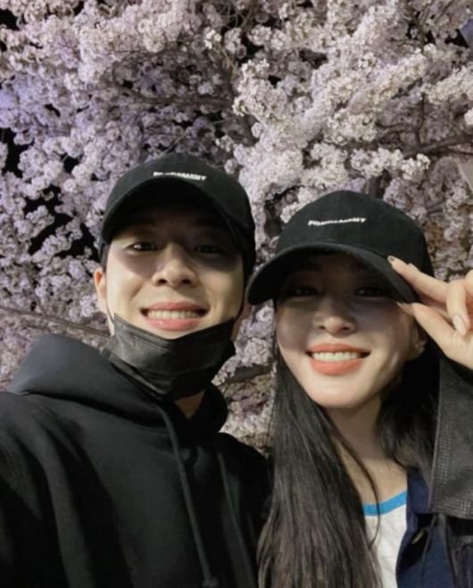 공개된 사진 속에서 한예슬은 남자친구와 커플 모자를 착용한 채 카메라를 바라보며 미소 짓고 있다.