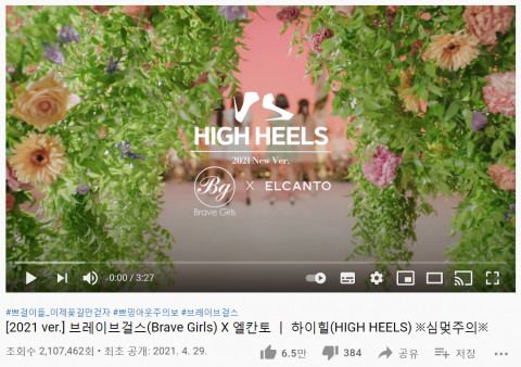 한편 엘칸토는 이러한 꽃길 역주행이 힘을 잃지 않도록 이번 2021년 버전 하이힐 M/V처럼 브레이브걸스를 향한 진짜 팬심을 담아 진정성이 돋보이는 컬래버레이션을 계속 진행할 예정이라고 밝혔다.