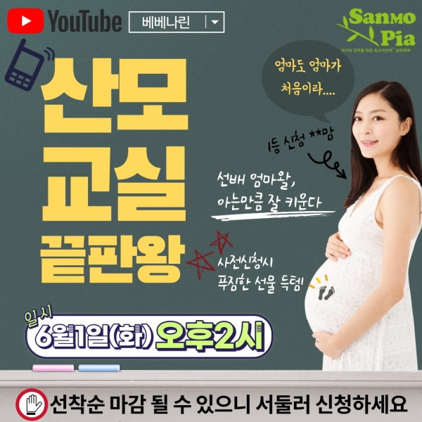 [스타인뉴스 이상백 기자] 프리미엄 산후도우미 파견회사 ‘산모피아’와 임신·출산·육아 커뮤니티 카페 ‘베베나린’이 오는 6월 1일 화요일 유튜브 베베나린 채널에서 비대면 온라인 산모교실을 진행한다고 밝혔다.