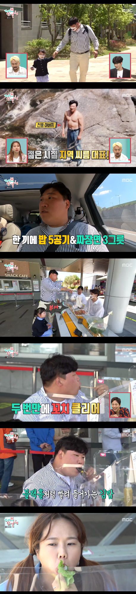홍현희는 "그럼 먹는 기질이 아버님 쪽이냐?"고 질문했고 천뚱은 "그렇죠. 아버님이 한끼에 밥 5공기, 짜장면 3그릇을 드셨다. 그래서 예전부터 어머님이 손이 크다"라고 이야기했다.