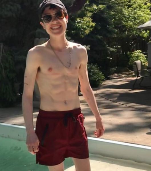 엘리엇 페이지는 공개된 사진에서 와인색 남성용 트렁크를 입고 상반신을 노출한 채 환하게 미소짓고 있다. 그는 지난 3월 유방 절제술을 받았다.