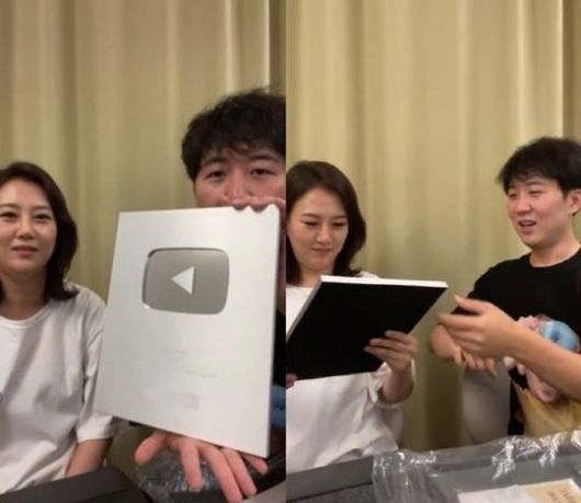 이에 도경완은 "여러분께서 많이 사랑해주신 결과물을 오늘 받았다"고 운을 뗐고, 장윤정은 "그게 뭐냐면 10만 구독자 넘으면 받는다는 그거!"라며 실버버튼을 공개했다.