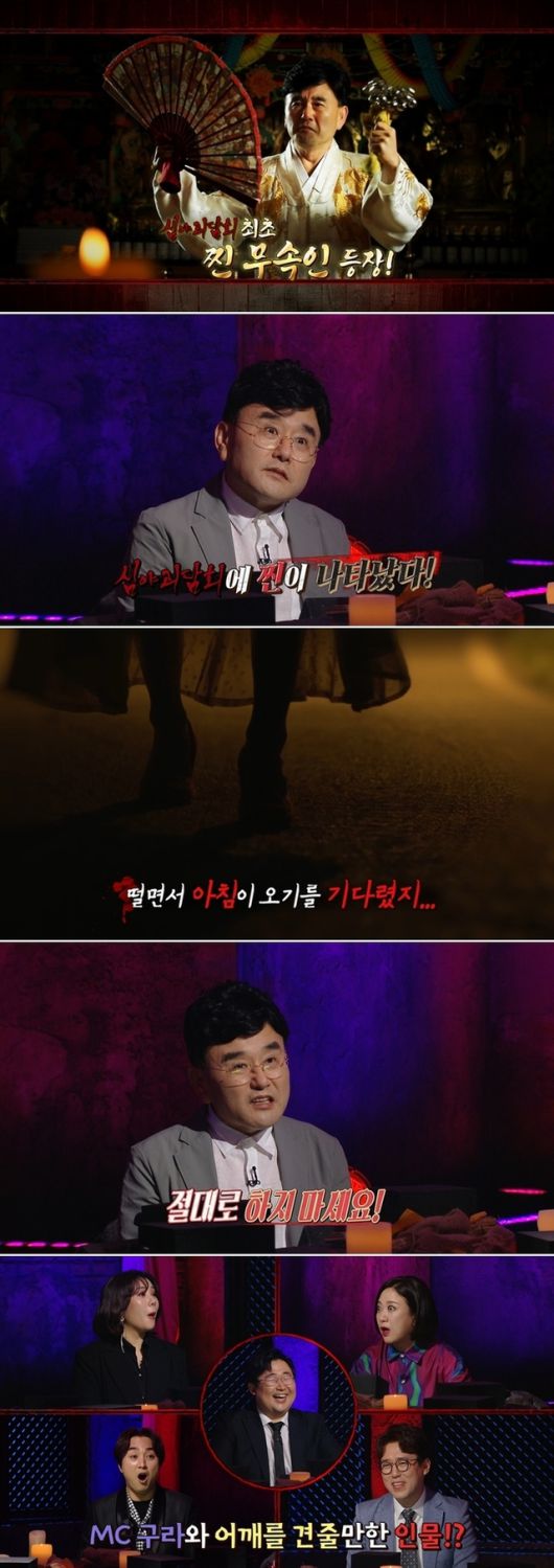 이어 정호근은 신내림을 받기 전, 드라마 촬영 중 말을 타다가 눈앞에 들이닥치는 귀신을 때문에 굴러 떨어질 뻔한 아찔한 에피소드를 들려주는 등, 급이 다른 찐(?) 괴담으로 출연진들을 기겁하게 만들었다. 심지어 '심야괴담회' 공식 ‘괴심파괴자’ 곽재식 박사마저 “괴심 파괴자의 파괴자가 등장했다”며 겁을 먹었다는 후문.