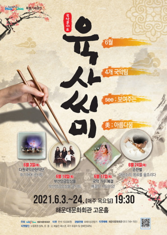 해운대문화회관은 올해 국악의 대중화를 위해 4월 국악 샌드매지컬 ‘청산 The 그리다’를 시작으로 5월, 영남국악관현악단의 ‘The Big Concert’를 이어 국악 상설 공연 ‘육.사.씨.미’를 기획함으로써 관객들에게 다양한 국악 공연을 제공하고 저변 확대에 힘쓰고 있다.