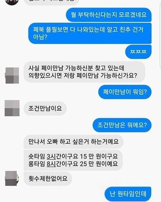이내 A 씨는 "사실 페이 만남 가능하신 분 찾고 있는데 의향 있으시면 저랑 페이 만남 가능하신가요?"라고 검은 속내를 드러냈다.