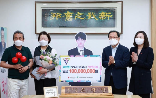 그룹 세븐틴 멤버 호시(본명 권순영)가 경기 남양주시 학대피해아동 등 위기가정을 위해 1억 원을 기부했다.