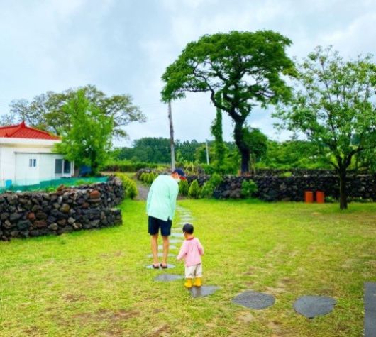 공개된 사진 속에는 강경준이 둘째 아들 정우와 함께 돌 길을 걷는 모습이 담겼다.