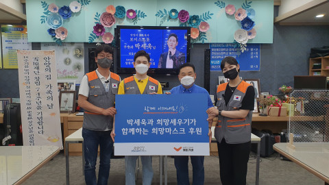 [스타인뉴스 김학철 기자] 해피기버와 박세욱 팬클럽 ‘희망 세우기(이하 희망 세우기)’가 8일 저소득 소외계층 아동들을 위해 마스크 전달식을 진행했다.