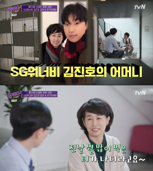 “반대로 진호 씨가 엄마한테 많이 하는 얘기가 뭐냐”는 유재석의 말에 노기화 자기는 “우리 엄마 최고야, 나이스”라고 말해 웃음을 줬다. 그는 “옛날부터 진호가 ‘나이스’라는 말을 많이 썼다”며 “다정다감한 남편을 닮은 것 같다”고 웃었다.
