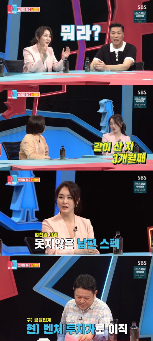 지난 21일 방송된 SBS 예능프로그램 ‘동상이몽 시즌2-너는 내 운명’(이하 ‘동상이몽2’)에는 신아영이 스페셜 MC로 출연했다.