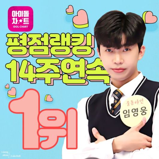 [스타인뉴스 박규범 기자] 가수 임영웅이 아이돌차트 14주 연속 팽점랭킹 1위를 차지했다.