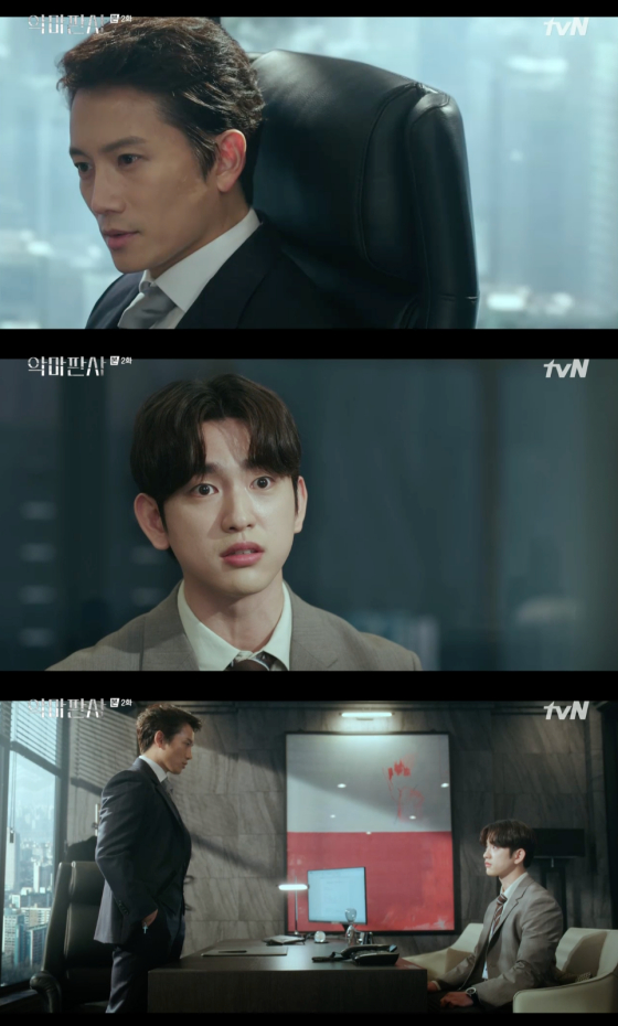 4일 밤 9시 방송된 tvN'악마판사'(연출 최정규/극본 문유석)2회에서는 강요한(지성 분)과 김가온(진영 분)의 신경전이 그려졌다.