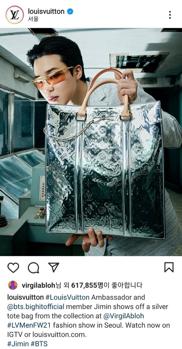 버질 아블로는 앞서 지민의 사진을 자신의 인스타그램 스토리에 포스팅한데 이어, 루이비통 인스타그램에 게시된 지민의 사진에 좋아요를 남기며 애정을 보였다.