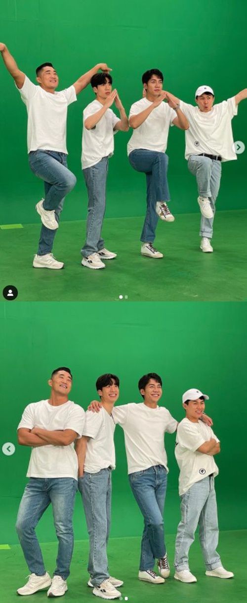 김동현, 유수빈, 이승기, 양세형은 집과 날개 모양 등의 포즈를 취한 상태다.
