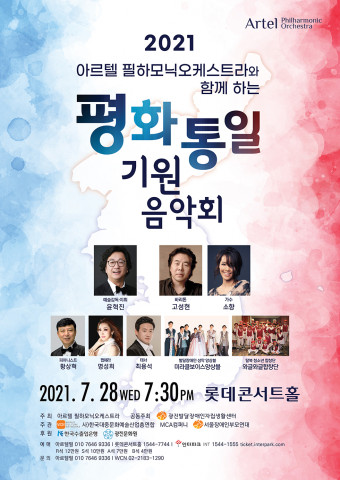 아르텔 필하모닉오케스트라와 함께하는 평화통일 기원음악회가 28일(수) 오후 7시 30분 롯데콘서트홀에서 개최된다. 공연 시간은 최근 코로나19 수도권 4단계 격상으로 기존 오후 8시에서 오후 7시 30분으로 변경됐다.