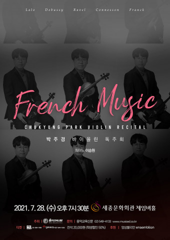 피아니스트 이승원이 함께하는 이번 연주에서 박주경은 ‘프랑스 음악’을 주제로 랄로, 드뷔시, 라벨, 프랑크와 더불어 1970년생의 프랑스 작곡가 기욤 꼬네숑의 작품을 연주한다.