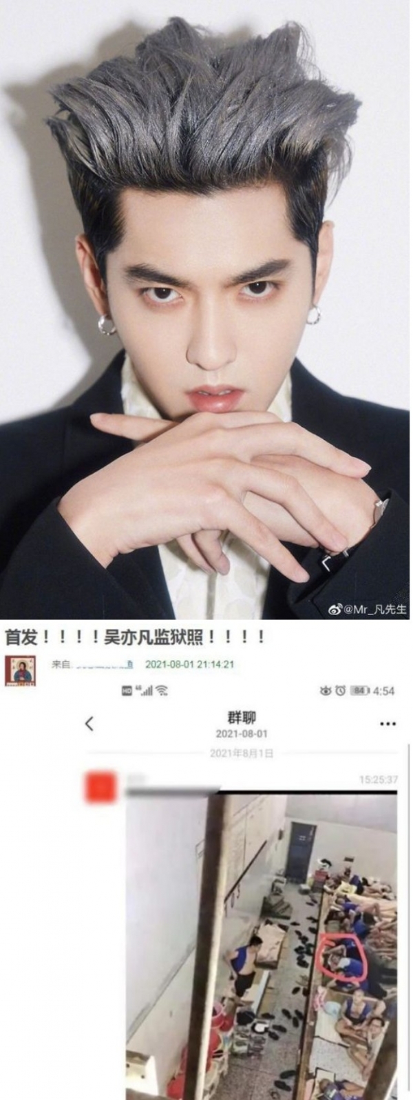중국 연예 뉴스 네트워크는 '우이판의 최근 구치소 사진? 그는 머리를 밀고 무기력해 보였다'는 제목의 기사를 보도했다. 기사에는 한 단체 채팅방에 올라온 크리스의 구치소 사진이 담겼다.