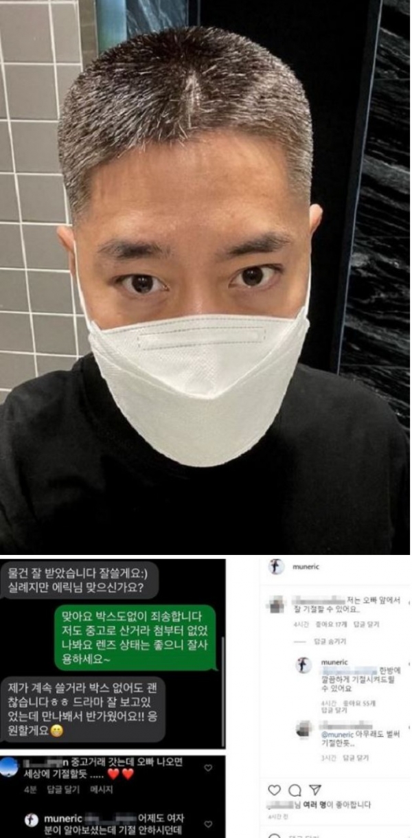 해당 메시지에서 에릭과 중고거래를 한 구매자는 "물건 잘 받았습니다. 잘 쓸게요. 실례지만 에릭님 맞으신가요?"라고 묻는다. 그러자 에릭은 "맞아요. 박스도 없이 죄송합니다. 저도 중고로 산 거라 처음부터 없었나봐요. 렌즈 상태는 좋으니 잘 사용하세요"라고 답했고, 구매자는 에릭을 응원하겠다며 훈훈하게 마무리했다.