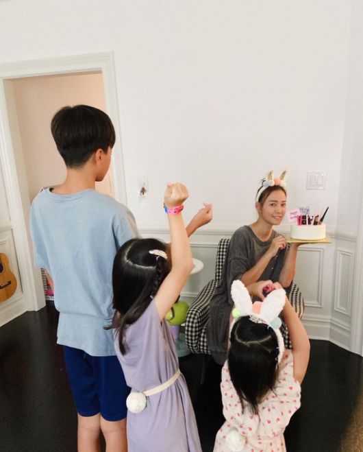 공개된 사진 속에는 손태영이 현재 머물고 있는 미국 자택에서 아이들과 생일 파티를 하고 있는 모습이 담겨 있어 눈길을 끈다.