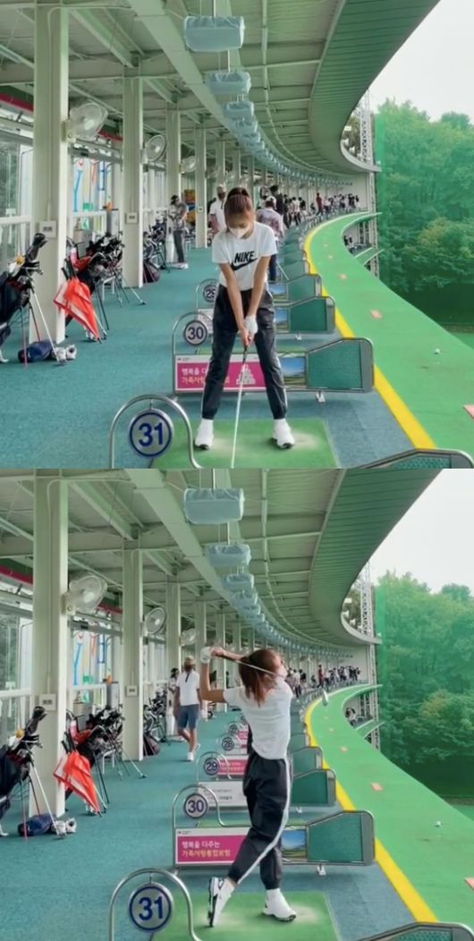 박연수는 26일 SNS에 짧은 영상 한 개를 게재했다. 공개된 영상에는 박연수의 딸 송지아가 골프 스윙을 연습하는 모습이 담겼다.