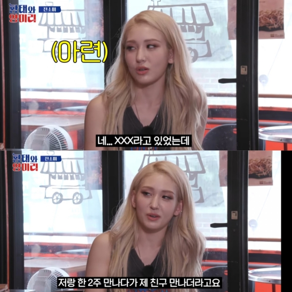 그녀는 전혀 개의치 않고 "저랑 한 2주 만나다가 제 친구 만나더라"라고 털어놓은 후 웃으며 "개XX"라고 해 MC들에게 충격을 주었다.