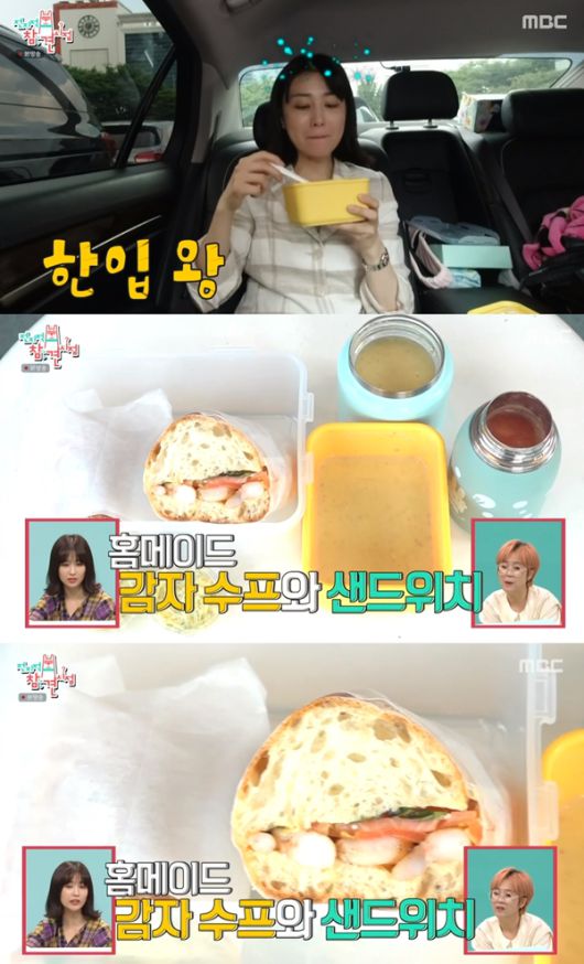 이날 박하선은 라디오 스케줄을 마친 뒤 다음 장소로 이동하기 전에 류수영이 싸준 홈메이드 도시락, 감자 수프와 직접 재배한 토마토로 만든 토마토 주스, 샌드위치, 레몬 딜 버터를 꺼냈다.