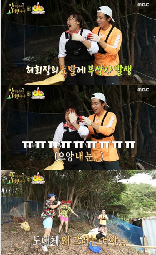 결국 '개콘'팀은 단체로 닭장에 들어갔다. 이상민은 뜰채로 단번에 닭을 한 마리 들어올렸다. 이에 비교되게 허경환은 뒤로 지나가는 닭에 놀라 바구니를 집어 던제 폭소를 더하기도.