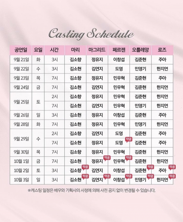 뮤지컬 마리앙투아네트, 폐막 1개월 앞두고 마지막 캐스팅 스케줄 공개