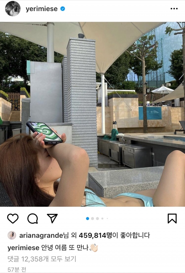 [스타인뉴스 김영선 인턴기자] 유명 팝스타 아리아나 그란데가 레드벨벳 예리의 인스타그램 게시글에 좋아요를 눌러 화제다. 예리는 31일 오후 2시쯤 '안녕 여름 또 만나'이라는 멘트와 함께 일상 사진을 업로드했다. 지난 2019년 7월 이후로 예리를 팔로우하고 있던 아리아나 그란데가 이 게시글에 좋아요를 눌렀고, 이를 발견한 팬들은 '예리 부럽다', '이게 바로 성덕이다'라는 반응을 보였다. 예리는 아리아나 그란데의 오랜 팬으로, 2019년에 아리아나 그란데가 자신의 인스타그램 계정을 팔로우했을 때도 기뻐하는 모습을 보인 바 있다.