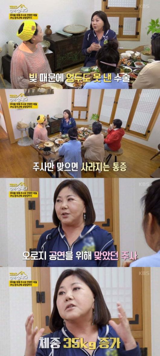 이어 "쿠싱 증후군이 와서 체중이 35㎏이나 쪘다"라며 "스테로이드 성분이 빠져야 회복이 된다고 하는데 그걸 온몸에서 빼는 데 2년 걸렸다"라고 했다. 그러면서 "작년 10월부터 20㎏을 뺐다"라고 얘기했다.