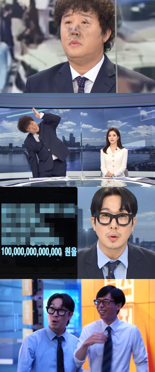 이후 정다희 앵커는 정준하 앵커를 보고 깜짝 놀랐는데, 그의 얼굴에 정체불명의 검은 흔적들이 묻어 있던 것. 이어 정준하가 아무 일도 없었다는 듯 정다희 앵커 옆에서 'I Say Woo!(아 새우)' 댄스까지 펼치는 모습도 포착돼 눈길을 모은다. 누구도 예상치 못한 상황에 유재석은 "마지막 확실하네!"라며 대만족한 웃음을 터트렸다는 전언이다.