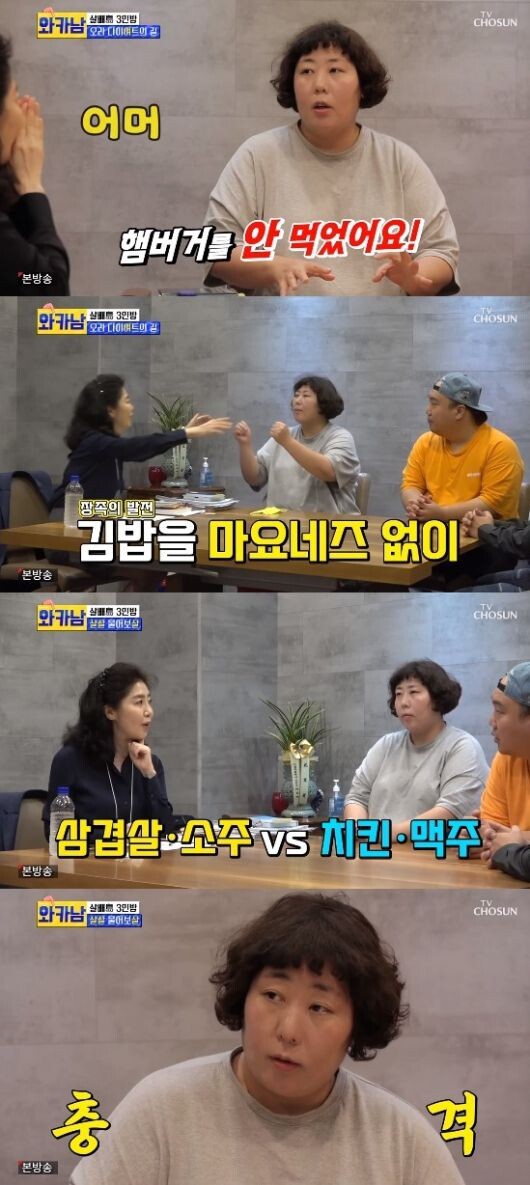 7일 오후 10시 방송된 TV조선 '와이프 카드 쓰는 남자'에서는 신기루, 이상준, 김영구가 여에스더를 만나 다이어트 상담을 진행했다.
