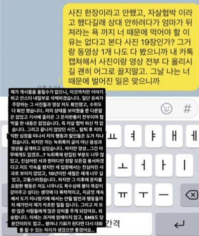 해당 사진은 권민아가 전 남자친구인 유 씨에게 보낸 것으로 보이는 메시지를 캡처한 것이었다.