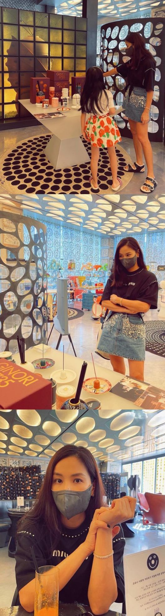고소영은 검은 블라우스에 데님 스커트로 센스있는 캐주얼룩을 입었고, 딸은 컬러풀한 스커트로 멋을 냈다. 고소영은 센스있는 패션과 함께 변함없는 비주얼을 자랑해 눈길을 끌었다.