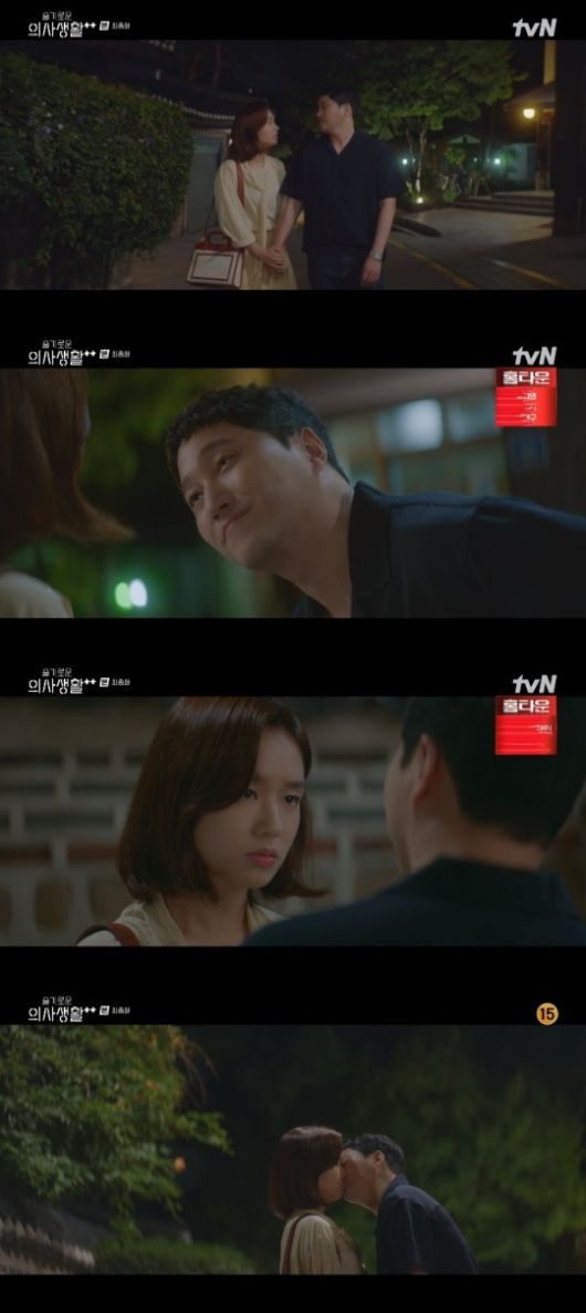 16일 오후 방송된 tvN 목요드라마 '슬기로운 의사생활 시즌2'에서는 양석형(김대명 분)이 추민하(안은진 분)의 고백을 듣고 깜짝 키스를 하는 장면이 그려졌다.