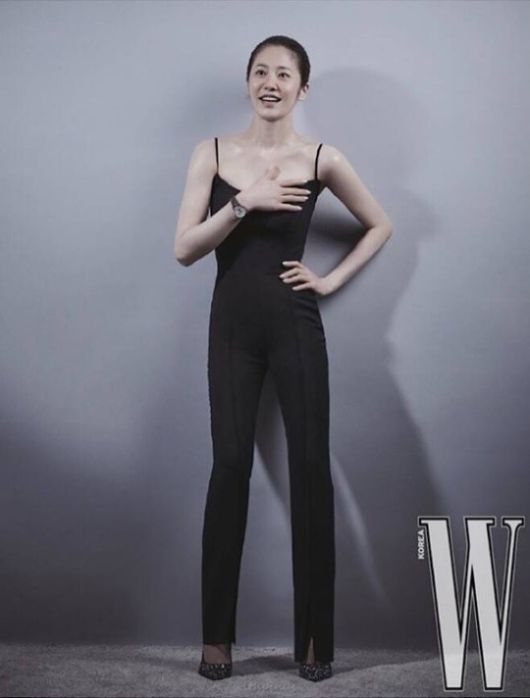 공개된 사진 속 고현정은 올블랙 점프수트를 입고 날씬한 몸매를 자랑하고 있다. 끈으로 된 민소매 의상은 그녀의 마른 몸매를 부각시켜주고 있다.