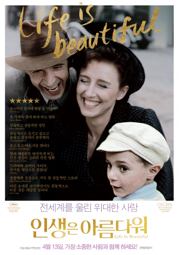 로마에 갓 상경한 시골 총각 ‘귀도’는 운명처럼 만난 여인 ‘도라’에게 첫눈에 반한다. 넘치는 재치와 유머로 약혼자가 있던 그녀를 사로잡은 ‘귀도’는 ‘도라’와 단란한 가정을 꾸리며 분신과도 같은 아들 ‘조수아’를 얻는다. ‘조수아’의 다섯 살 생일, 갑작스레 들이닥친 군인들은 ‘귀도’와 ‘조수아’를 수용소 행 기차에 실어버리고, 소식을 들은 ‘도라’ 역시 기차에 따라 오른다. ‘귀도’는 아들을 달래기 위해 무자비한 수용소 생활을 단체게임이라 속이고 1,000점을 따는 우승자에게는 진짜 탱크가 주어진다고 말한다. 불안한 하루하루가 지나 어느덧 전쟁이 끝났다는 말을 들은 ‘귀도’는 마지막으로 ‘조수아’를 창고에 숨겨둔 채 아내를 찾아 나서는데… 전세계를 울린 위대한 사랑, 마법처럼 놀라운 이야기가 찾아온다!