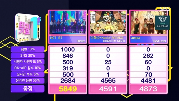 그룹 NCT 127이 정규 3집 타이틀곡 'Sticker(스티커)'로 데뷔 5년 만에 '인기가요' 1위를 차지했다. NCT 127은 수상 직후 라이브 방송을 통해 "(인기가요 트로피를) 데뷔해서 얼마 안됐을 때 받았다면 그 무게감을 몰랐을 것"이라며 수상의 기쁨을 누렸다.