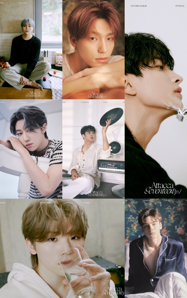 소속사 플레디스 엔터테인먼트는 5일 0시 세븐틴 공식 SNS를 통해 오는 22일 발매되는 미니 9집 'Attacca'의 첫 번째 오피셜 포토를 공개했다.