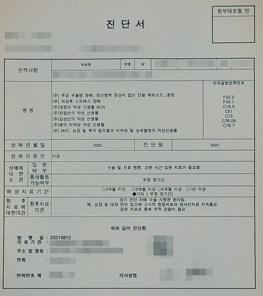 최성봉은 지난 7일 인스타그램을 통해 “제 암 투병이 허위 사실이라고 하는 것에 반박한다”며 장문의 글과 진단서를 공개했다.