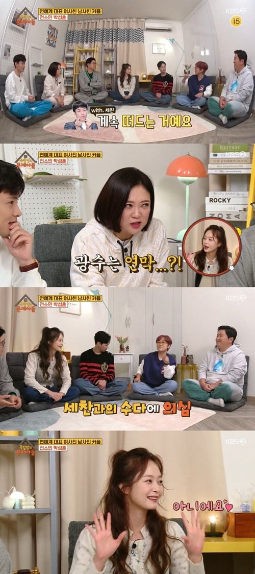이에 민경훈과 정형돈은 "뭘 봤구나"라고 말했고, 송은이는 "내가 다른 교회 저녁 예배를 갔는데 키 작은 남자랑 키 큰 여자랑 키 큰 남자가 들어오더라. 이광수, 양세찬, 전소민이야"라고 운을 뗐다.