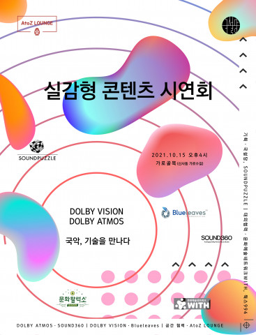 국악이 기술, 기업, 전시와 만나는 새로운 형식의 국악축제 서울국악주간 토크 콘서트는 Dolby Atmos, Dolby Vision 기술이 접목된 실감형 국악 콘텐츠 시연회다. STEAL THE APPLE 전시회, 인케이스와 컬래버로 이뤄지는 기업 협력 작업이다.