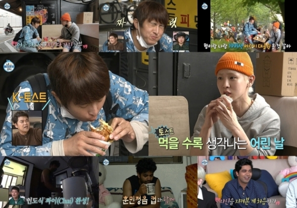 "뇌세포는 죽어도 혀 세포는 안 죽는 것 같다. 그때 생각이 난다"며 추억의 맛에 푹 빠진 키안 브라더스 앞에 먹방의 대미를 장식할 'K-토스트'가 등장했다. 마가린을 듬뿍 발라 구운 식빵과 야채를 다져 넣은 계란 부침까지 요즘 좀처럼 보기 힘든 추억의 메뉴가 등장하자 무지개 스튜디오가 뜨겁게 달아올랐다.