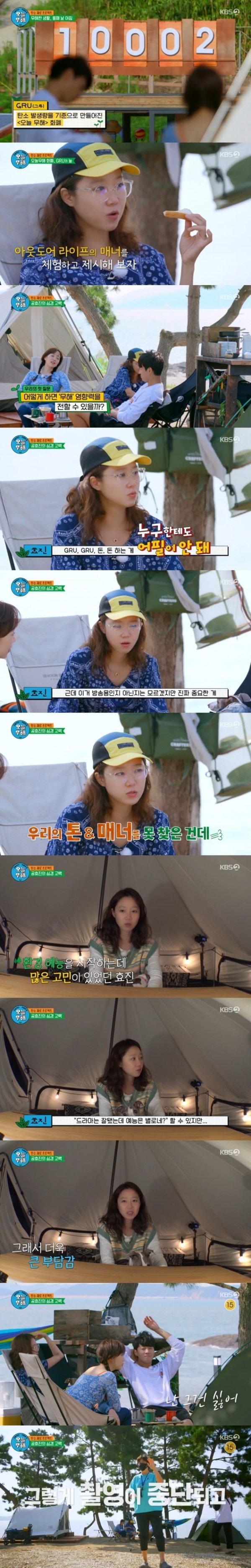 결국 공효진의 의견에 촬영이 중단됐고, 제작진과의 긴급 회의를 진행했다. 공효진은 "우리가 뭘 하느냐가 또 그림이니까 한번 생각해 보자"라고 제안했다. 이후 세 사람은 플로깅을 하는가 하면 저탄소 로컬 푸드 먹기 등을 통해 탄소 제로 프로젝트의 의미를 다시 한번 강조했다.