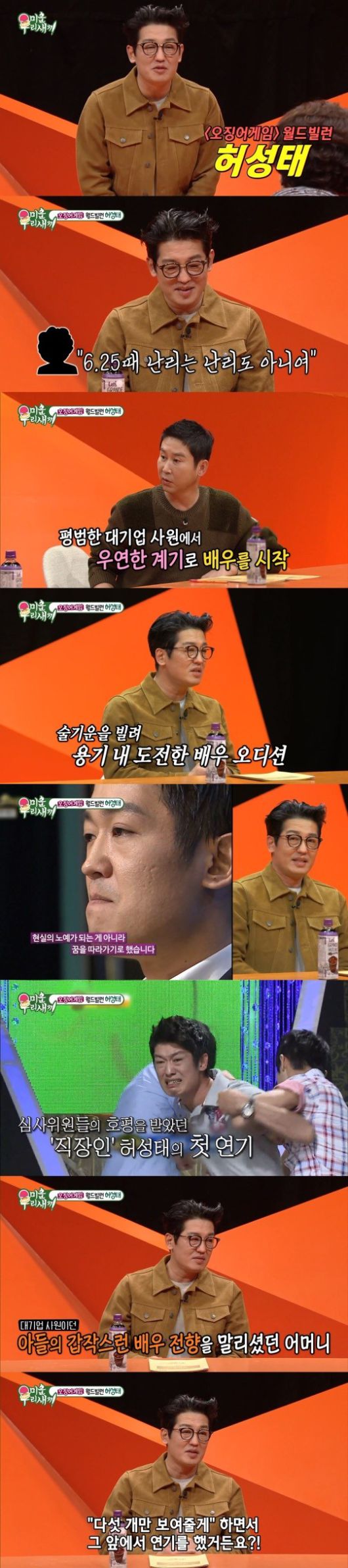 제작진은 허성태의 과거 영상을 공개했고, 허성태는 "심사위원 다섯 분이 다 OK를 주셨다. 한 분이라도 안 주셨으면 나는 다 공감시키지 못했으니까 못 하는 사람이라고 받아들이고 다시 회사에 갔을 거다"라며 밝혔다.
