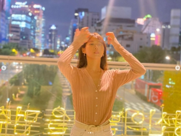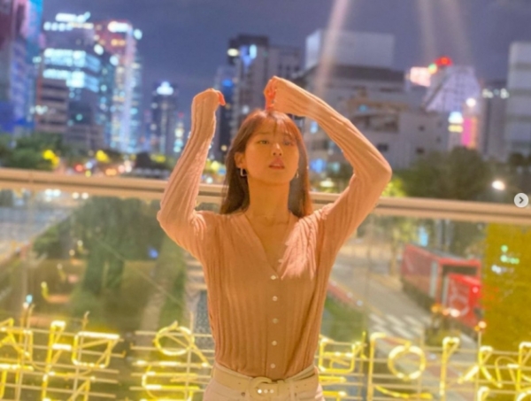 사진에서 설현은 반짝이는 야경을 배경으로 자체발광 미모를 뽐내고 있는 모습이다. 그는 핑크 컬러의 가디건 패션으로 청순한 매력과 섹시미까지 자아냈다.
