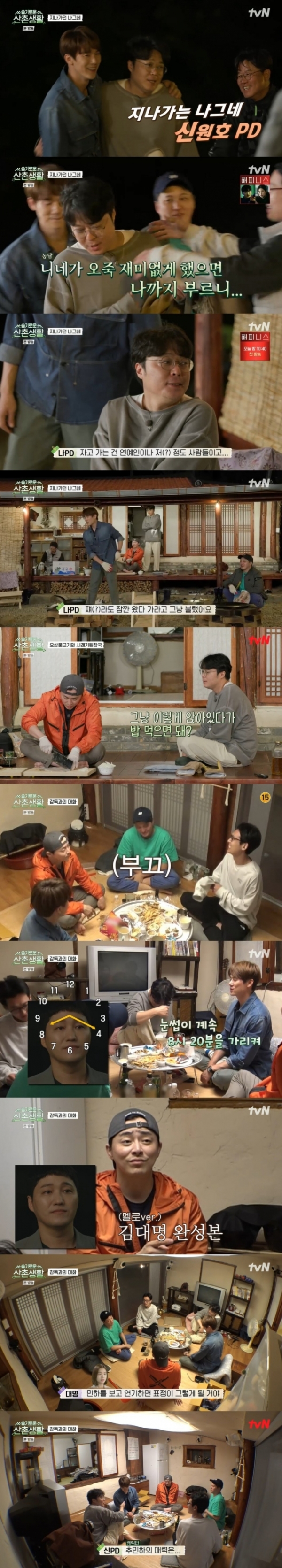 5일 오후 방송된 tvN 예능 프로그램 '슬기로운 산촌생활'에서는 신원호 PD가 산촌에 깜짝 등장헤 배우 조정석, 유연석, 정경호, 김대명 등을 만나 훈훈함을 선사했다.