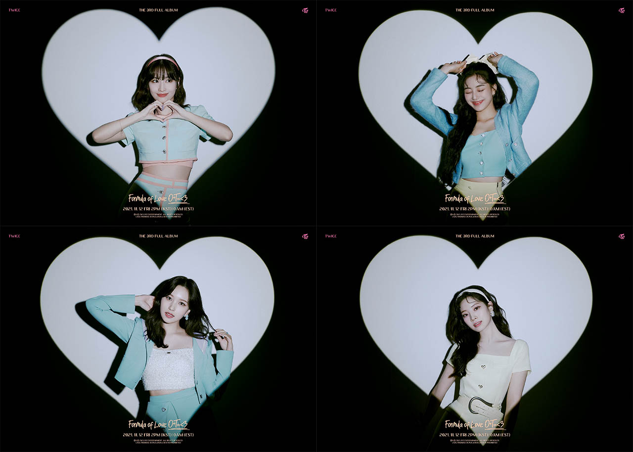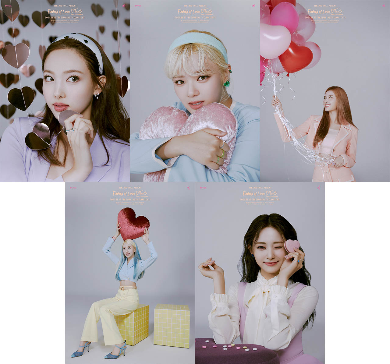 트와이스의 소속사 JYP엔터테인먼트는 5일 공식 SNS 채널에 트와이스 정규 3집 'Formula of Love : O+T=<3' (포뮬러 오브 러브 : O+T=<3)의 개별 콘셉트 사진을 추가 오픈했다.