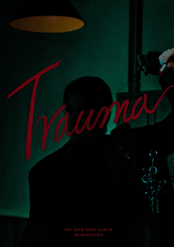 공개된 타이틀 포스터에는 SF9 멤버 중 한 명으로 추정되는 인물이 어두운 배경 속 붉은색 립스틱으로 거울에 타이틀 곡명 'Trauma'를 적어놓았다.